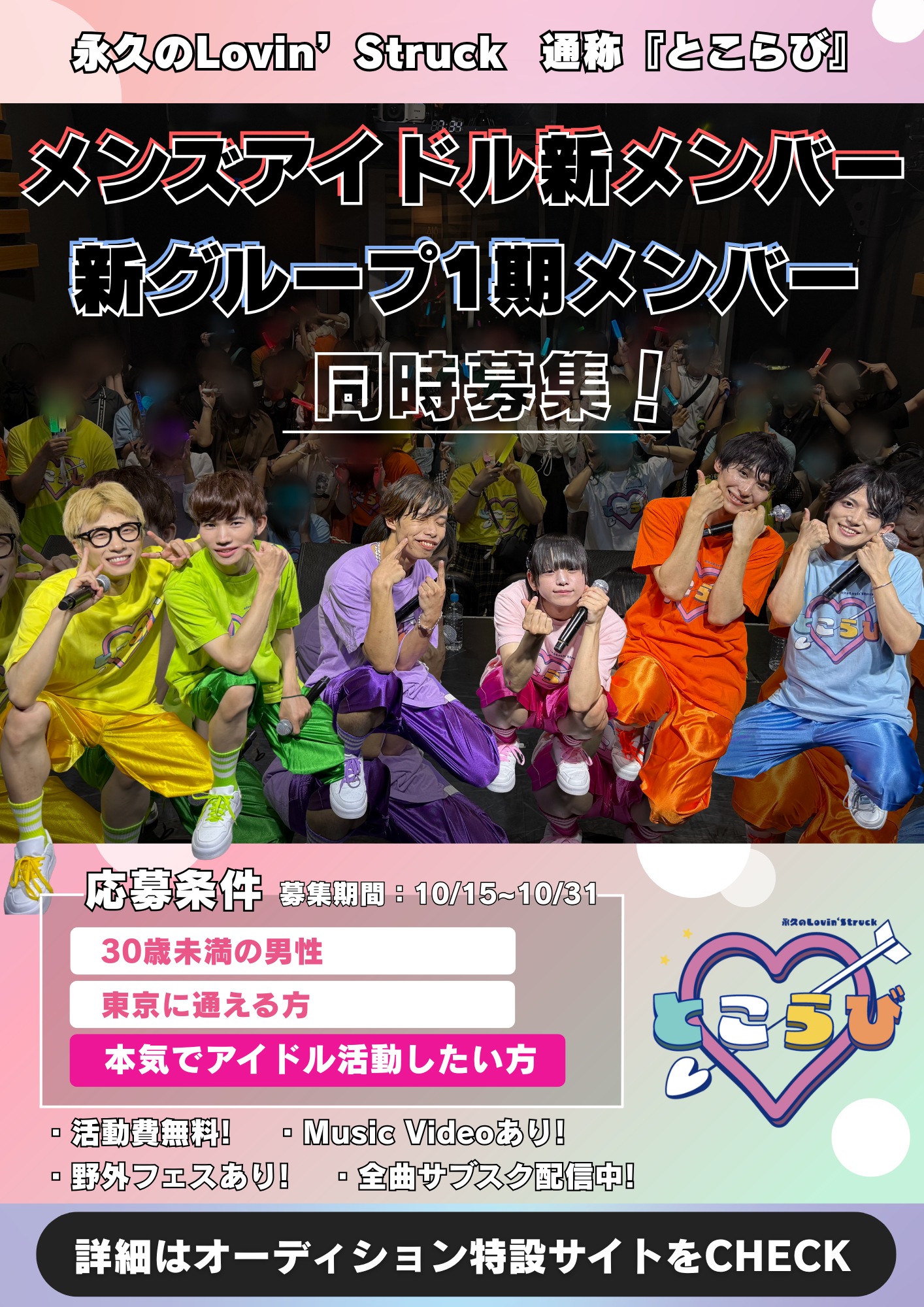 今回のオーディションではそんな永久のLovin'Struckの新メンバー、更に新グループの1期生の募集を行い、合格者は適正に応じて所属先を決定する予定です。