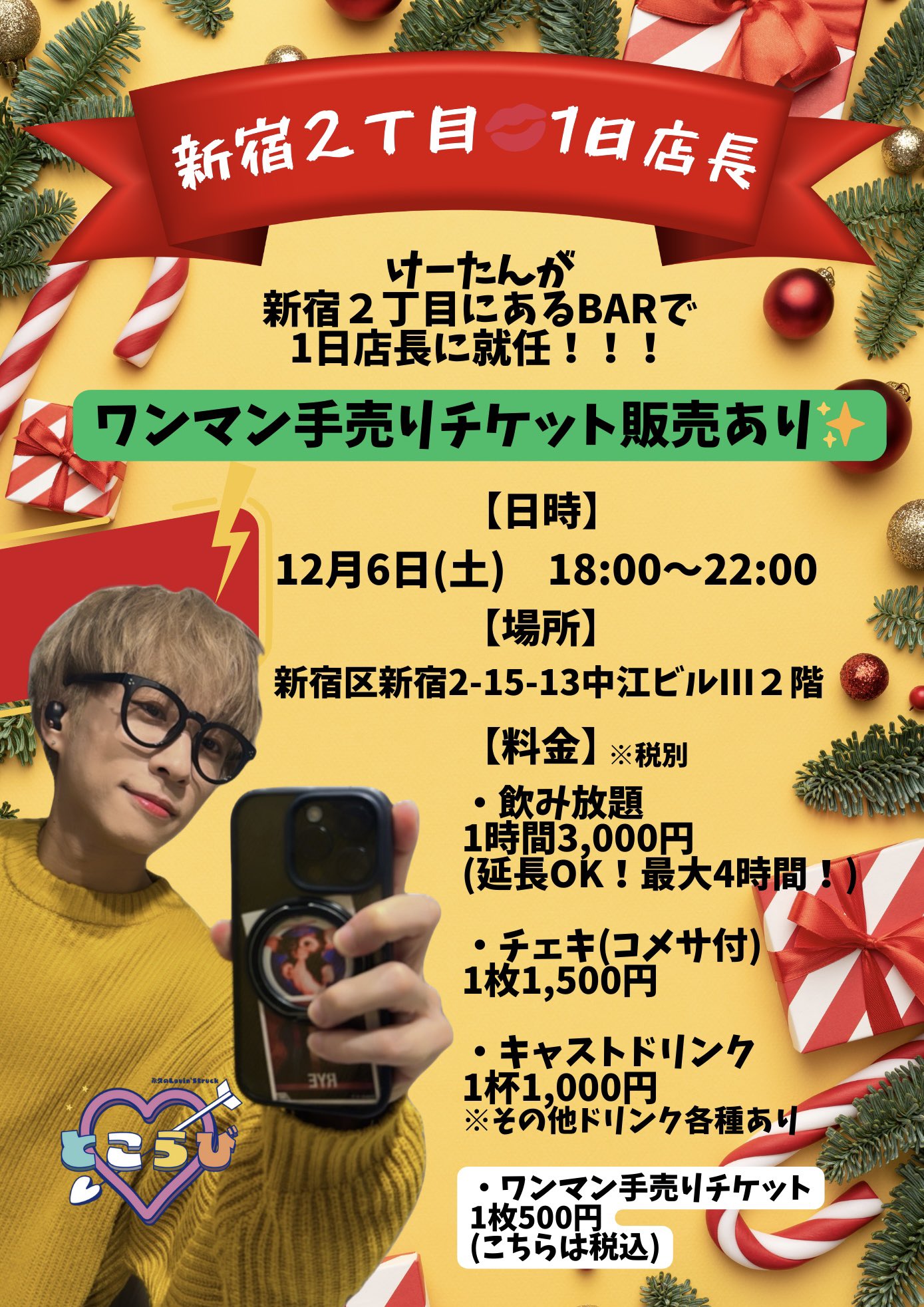 新宿2丁目のBarをお借りして1人でBarけーたんやります!