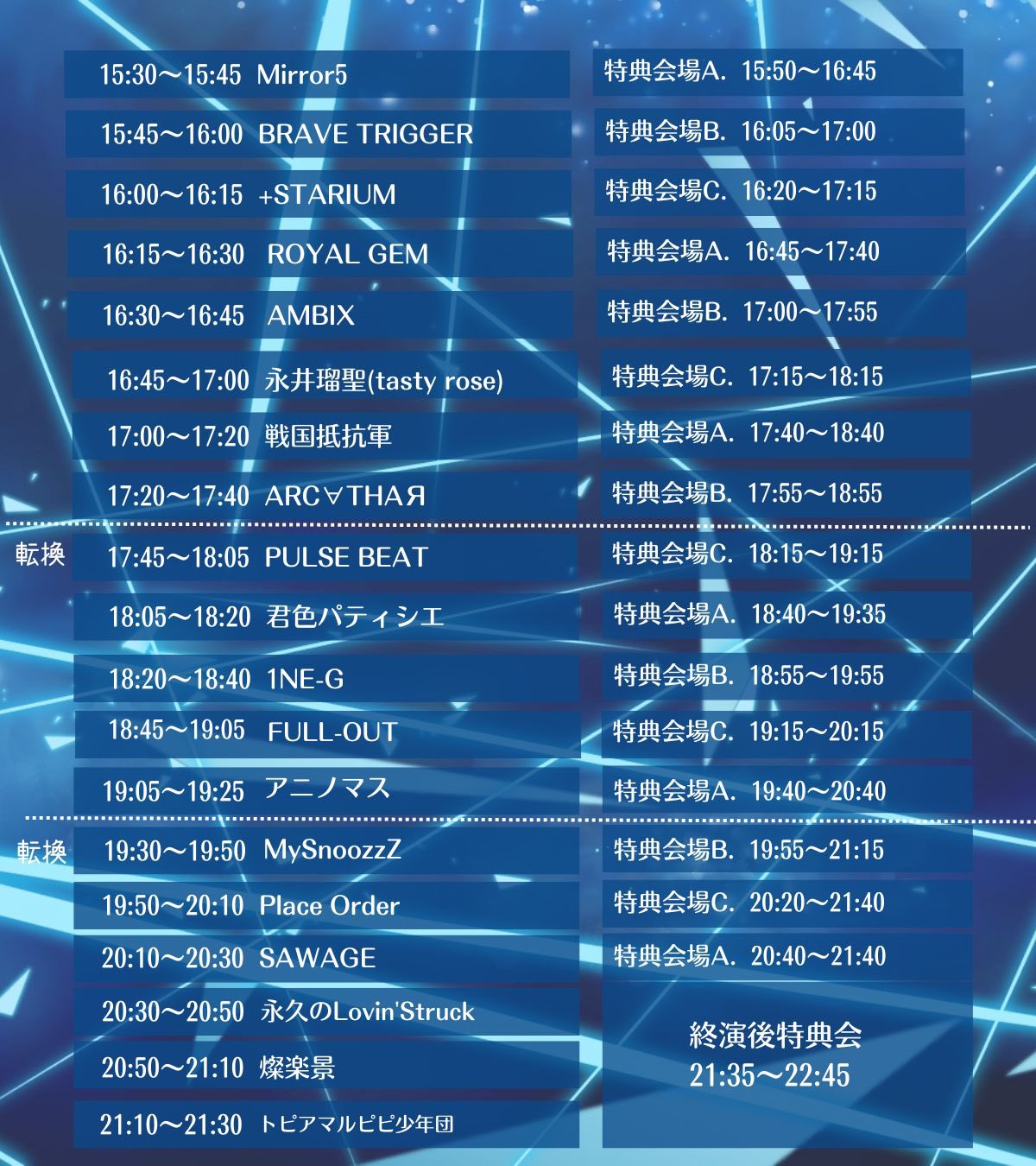 特典会: 21:05〜22:35