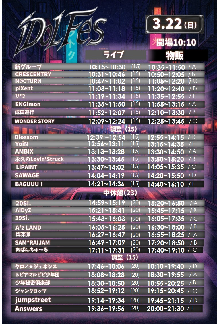 特典会: 13:10〜14:20 / 17:25〜18:35
